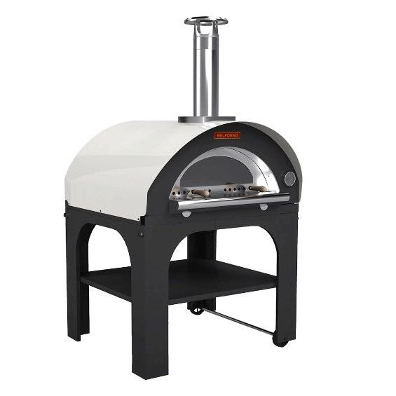 - Steel oven door with wood handles